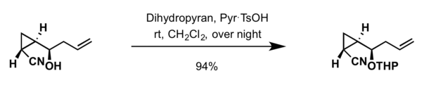 In a typical procedure, the alcohol is treated with 3,4-dihydropyran and p-toluenesulfonic acid in dichloromethane at ambient temperature.[2]