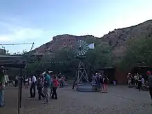 The show is produced by Texas Panhandle Heritage Foundation, a not-for-profit organization.[13] It was founded by Margaret Pease Harper on May 7, 1961.[14][15][16] Along with Harper, the first board of directors included Pete Cowart, Jerry LaGrone, Dorothy Nebelett, Raymond Raillard, William A. Moore, and Avent Lair.[16] In July, they discussed their initial purpose, which was to "recapture, recreate, and preserve the history of the Texas Panhandle by the presentation of a symphonic drama in a permanent theater in the Palo Duro Canyon of Texas."[17] In September 1961, the organization incorporated legally and the group came to represent 40 West Texas counties.[16] The first project of the group was to build an amphitheater in Palo Duro Canyon, which would have as a backdrop a 600-foot cliff.[16][18] The theater, named Pioneer Amphitheater, was eventually built with 1,600 seats.[16]