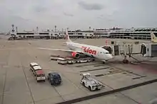 Thai Lion Mentari Co. Ltd, trading as Thai Lion Air (Thai: ไทยไลอ้อนแอร์), is a Thai low-cost airline,[1] operating with Thai partners as an associate company of Lion Air of Indonesia.[2] The carrier operates from Bangkok's Don Mueang International Airport,[3] with plans to serve domestic and international scheduled flights from other cities in Thailand. Its head office is in the Don Mueang District, Bangkok.[4]
