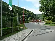 The Dresden–Werdau railway was electrified in 1966. This had tremendous advantages for operations, since Tharandt station’s bank engines were no longer required. Heavy goods trains were hauled by two class E 42 locomotives and passenger trains were hauled by one locomotive of the same class. The track systems were subsequently simplified. An undated track plan no longer shows a locomotive shed.[4] The largest structural changes were completed after 1989; the luggage transfer lifts on the island platforms were removed, but the exact date of this change is not known. Today only a single-storey building is visible on this platform.[11] The tracks on the station forecourt were removed and replaced by a bus stop and extensive bicycle stands.
