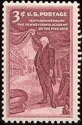 The painting appeared on a stamp commemorating the Academy's 150th anniversary