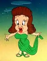Elmer's anger about a failed pursuit through the surreal landscape is promptly used against him by Bugs who inquires, "What's the matter doc, ya cold? Here, I'll fix dat." Before Elmer can react, Bugs dresses him in drag, (dress, wig, lipstick) transforming the inept hunter into a woman with an hourglass figure who resembles Rita Hayworth. Bugs inspects his handiwork, then lifts the backdrop to reveal a trio of literal wolves in Zoot suits, lounging by the sign at Hollywood and Vine. When the trio notice "Elmer", one wolf howls, "How-ooooooold is she?" while another begins flirting with the gender confused Elmer. Bugs enjoys watching the male wolves hit on Elmer, who exclaims "Gwacious!" before fleeing from the pursuing wolves; he briefly stops to ask the viewer, "Have any of you giwls evew had an expewience wike this?"