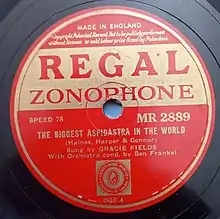 - ↑ Decca matrix DLA 2456. The biggest aspidistra in the world / Gracie Fields, Discography of American Historical Recordings. Retrieved 15 January 2021