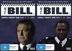 Series 21 of British television drama The Bill was broadcast from 5 January until 29 December 2005. The series consisted of 106 episodes, making it the series with the highest number of episodes in the show's final decade, tied with series 19. Joint-longest serving cast member, DC Jim Carver (Mark Wingett), exited the show after 21 years, having been with the show since its first ever episode; he was the sixth character with over ten years on the series to have exited in the previous three years. It followed the events of the third Sun Hill station fire. As was the case in 1990 and 2002, a redevelopment to a large part of the station set was explained by an explosion, racist PCSO Colin Fairfax driving a van into the station reception to shift the blame for a terror attack onto the local Asian community; the fire led to three characters being killed off. The death of Carver’s best friend in the blaze, DC Ken Drummond, came before the revelation that his estranged wife June Ackland had an affair with experienced PC Roger Valentine. Ackland, co-protagonist with Carver in the series pilot Woodentop, was involved in a 30-minute special episode that ended with Carver’s exit. Actor Mark Wingett also featured in spin-off documentary series The Bill: Uncovered, exploring Jim’s time on the show that included addictions to alcohol & gambling and two failed marriages. The final of four Uncovered documentaries saw Superintendent Adam Okaro narrate on some of the best moments from the show's 21-year history, however the episode did not air in the U.K; instead it aired in Australia a year after its originally planned broadcast.