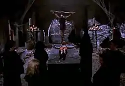 Callisto was the fool and then justice; Xena was the high priestess, then the chariot, and also death for a short time; Gabrielle was the star, then the empress, and then the world; Joxer was the hanged man and then the hermit; Ares was the emperor; Lila was the hierophant; and Solon was the magician. In chronological order, scenes were made to resemble the high priestess, wheel of fortune, the hanged man, the lovers, the moon, the chariot, the tower, judgement, the devil, temperance, and the sun.