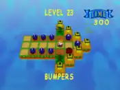 The game was independently re-developed for the Nintendo 64 by Realtime Associates,[1] and game designer Scott Kim.[1] In the early days of the games production it was titled "Charlie Blast's Challenge".[3][1][5] Besides changing the graphics, a four-player versus mode was also added wherein players can control Charlie or one of three other characters and must conquer as much of the land as possible with one's own bomb blasts. The multiplayer mode includes several bombs not featured in the main solo mode, like a freeze bomb, which when lit, will encase the other player(s) in blocks of ice, and a rainbow bomb, which is capable of exploding an entire row or column that the bomb is facing.