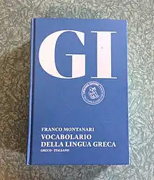 The Brill Dictionary of Ancient Greek is an English language dictionary of Ancient Greek, translated, with the addition of some entries and improvements, from the third Italian edition of Franco Montanari's GI - Vocabolario della lingua greca. [1] It's mostly a new lexicographical work, not directly based on any previous dictionary.[1] It has about 140,000 entries over 2500 pages.