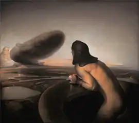 The Cloud (Norwegian: Skyen) is an oil painting by the Norwegian artist Odd Nerdrum, from 1985.. It depicts a nude man in a leather helmet, looking out over a landscape with a compact dark cloud in the sky. It is held in a private collection.