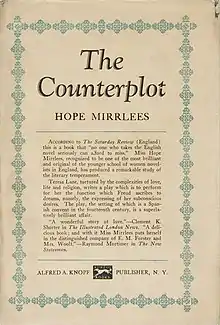 The Counterplot is the second novel by Hope Mirrlees. Written in 1923, it was originally published in 1924, and is the only one of Mirrlees's three novels to take place in then-contemporary settings, Madeleine: One of Love's Jansenists (1919) being a historical novel, while Lud-in-the-Mist (1926) is a fantasy.