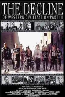 The Decline of Western Civilization III is a 1998 documentary film, directed by Penelope Spheeris, that chronicles the gutter punk lifestyle of homeless teenagers. It is the third film of a trilogy by Spheeris depicting life in Los Angeles at various points in time. The first film, The Decline of Western Civilization (1981), dealt with the punk rock scene during 1980–1981. The second film, The Decline of Western Civilization Part II: The Metal Years (1988), covers the Los Angeles heavy metal movement of 1986–1988.