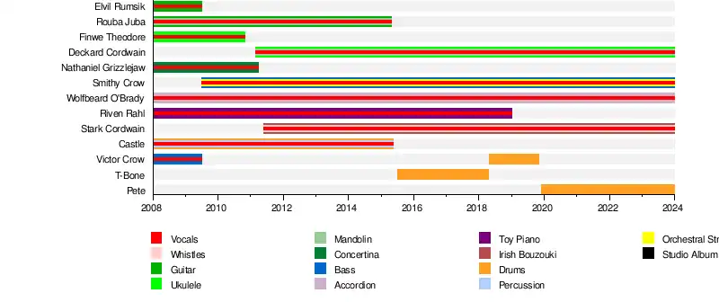 - Nathaniel Grizzlejaw – concertina, vocals (2008–2011)