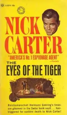 The Eyes of the Tiger is the ninth novel in the long-running Nick Carter-Killmaster series of spy novels.[1][2] Carter is a US secret agent, code-named N-3, with the rank of Killmaster. He works for AXE – a secret arm of the US intelligence services.