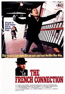 The French Connection is a 1971 American neo-noir[6] action thriller film[7] directed by William Friedkin and starring Gene Hackman, Roy Scheider and Fernando Rey. The screenplay, written by Ernest Tidyman, is based on Robin Moore's 1969 non-fiction book of the same name. It tells the story of fictional NYPD detectives Jimmy "Popeye" Doyle and Buddy "Cloudy" Russo, whose real-life counterparts were narcotics detectives Eddie Egan and Sonny Grosso, in pursuit of wealthy French heroin smuggler Alain Charnier (played by Rey).
