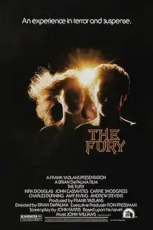 The Fury is a 1978 American supernatural horror thriller film directed by Brian De Palma and starring Kirk Douglas, John Cassavetes, Amy Irving, Carrie Snodgress, Charles Durning, and Andrew Stevens. The screenplay by John Farris was based on his 1976 novel of the same name.