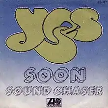Entitled "Soon", the last part of the song "The Gates of Delirium" was issued as Atlantic single #3242 in January 1975.[7] Its B-side was typically a single edit of "Sound Chaser" (3:13), though copies exist of the release with both "Sound Chaser" – probably in the same single edit – and "Roundabout" or a mono version of the song (without "Sound Chaser" in any form) as the B-side.[8] Cash Box described it as "the distinctive sound of Yes is here presented in an eerie, mysterious setting with vocalist Jon Anderson floating amidst the spacey sounds of the rest of the band."[9]