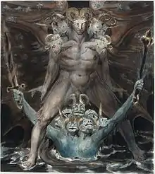 The Great Red Dragon paintings are a series of watercolour paintings by the English poet and painter William Blake, painted between 1805 and 1810.[1] It was during this period that Blake was commissioned to create over one hundred paintings intended to illustrate books of the Bible. These paintings depict "The Great Red Dragon" in various scenes from the Book of Revelation.