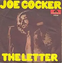 English singer Joe Cocker recorded "The Letter" during the rehearsals for his upcoming Mad Dogs and Englishmen tour on March 17, 1970.[25] Leon Russell and the Shelter People provided the back up; Russell and Denny Cordell produced the recording.[25] A&M Records released it as a single, with "Space Captain" as the B-side. It appeared in Billboard's Hot 100 in April 1970 and eventually reached number seven.[26] "The Letter" became Cocker's first top ten single in the US. In the UK, the single reached number 39.[27]