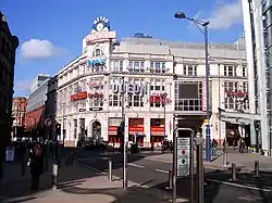 Earlier names of the buildings associated with publishing that were incorporated into the development include Withy Grove Printing House,[9] the Chronicle Buildings,[10][11][12] Allied House, Kemsley House, Thomson House and Maxwell House.[13][14] Kemsley House on the corner of Withy Grove and Corporation Street was developed gradually from 1929 and became the largest newspaper printing house in Europe.[4][15][16][17] The site housed a printing press until 1988.[11] Robert Maxwell bought the property and subsequently closed it down.[18] The building was left unused for over a decade and fell derelict.
