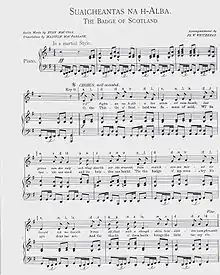 Malcolm MacFarlane (1853-1931) translated this song from the Scottish Gaelic of Evan MacColl (1808-1898).[1] It was first published in Macfarlane's book, Songs of the Highlands, Inverness: Logan & Company, 1902, pp. 44–45.[2] The accompaniment was by Frederick Wilson Whitehead (1863-1926). It is considered by some to be a possible national anthem for Scotland. A spirited rendition of this song by Ina Miller can be found here.