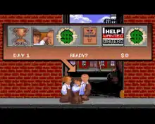 John Cutter designed the game as a kind of board game.[2] The Three Stooges must rescue an old woman's orphanage by earning money in minigames based on various Three Stooges films. These include cracker-eating contests (based on the Stooges short Dutiful But Dumb) and boxing matches (based on the short Punch Drunks).[3] Players select minigames by timing a button press as a hand randomly points to various symbols representing in-game events, including non-interactive events that can raise or lower the Stooges' cash total. Each event takes up one in-game day; players have 30 in-game days to earn as much money as possible.[4]