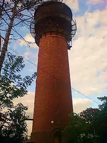 The Water Tower is a water tower located in Coleshill, Buckinghamshire. It was built by German prisoners of war during the First World War to provide a gravity fed water system for the nearby town of Amersham. The tower is 30 metres (100 ft)[1] high with an internal diameter of 5.4 metres (18 ft). Its location on the summit of a hill makes the tower something of a local landmark and it is easily visible from the M40 motorway. Central London, Canary Wharf and Guilford Cathedral can be seen from the top of the tower on a clear day.[2] In the late 1990s the tower was turned into a residential dwelling. In 1999 it featured on the Channel 4 programme Grand Designs.[3]