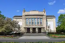 The Theater Gießen, official name Stadttheater Gießen (Gießen Municipal Theatre), is a theatre in Gießen, Germany, a cultural center for the university city and the region. The main building was designed in Neo-classical style with influences of Jugendstil by architects Fellner & Helmer and completed in 1906. It has two stages, seats around 700 visitors and presents opera, musical, operetta, plays and modern dance theatre.