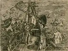 Depiction of Spanish atrocities in the New World, as recounted by Bartolomé de las Casas in Narratio Regionum indicarum per Hispanos Quosdam devastatarum verissima, illustrations designed by Joos van Winghe.[3]