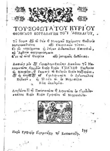 - ↑ Ευάγγελος Παπανούτσος, «Θεόφιλος Κορυδαλεύς», Νεοελληνική Φιλοσοφία, τ. Α, εκδ. Βασική Βιβλιοθήκη-35, Athens, p. 52