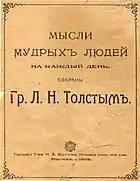 When Leo Tolstoy was working on his book The Thoughts of Wise People for Every Day,[15] he used a magazine of the Theosophical Society of Germany Theosophischer Wegweiser. He extracted eight aphorisms of the Indian sage Ramakrishna, eight from The Voice of the Silence[16] by Blavatsky, and one of fellow Theosophist Franz Hartmann, from the issues of 1902 and 1903, and translated them into Russian.[17] Tolstoy had in his library the English edition of The Voice of the Silence, which had been presented to him by its author.[18][note 4]