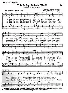 "This is My Father's World" is a Christian hymn written by Maltbie Davenport Babcock, a minister from New York, and published posthumously in 1901.