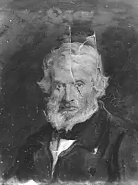 The earliest mention of the portrait comes from Carlyle's friend William Allingham, who recorded in his Diary on 11 April 1877: "Millais is to paint him."[2] The first two sittings occurred on 26 and 28 May of that year. On 29 May, Carlyle wrote to his brother that "Millais seems to be in a state of almost frenzy about finishing with the extremest perfection his surprising and difficult task; evidently a worthy man."[3] James Anthony Froude, who commissioned it, documented its progress:[4]