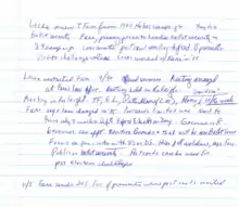 Hebert's notes documenting Farr's participation in a planning meeting prior to the postcard mailing.