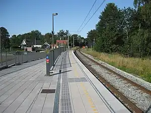 The station became unstaffed on 27 September 1964, and closed altogether 22 May 1971.[4] It reopened on 30 April 2019, after the Grenaa railway line had been reconstructed and electrified to form part of the Aarhus light rail system, a tram-train network combining tram lines in the city of Aarhus with operation on railway lines in the surrounding countryside.[2] Since 2019, the station has been served by Line L1 of the Aarhus light rail network, operated by the multinational transportation company Keolis.[5]