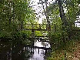 ![]() Footbrige over Little Bushkill Creek, on the northeast spur of the Thunder Swamp Trail | |