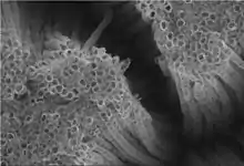 - ↑ Mogilevsky, Gregory; Chen, Qiang; Kleinhammes, Alfred; Wu, Yue (2008). "The structure of multilayered titania nanotubes based on delaminated anatase". Chemical Physics Letters. 460 (4–6): 517–520. Bibcode:2008CPL...460..517M. doi:10.1016/j.cplett.2008.06.063.