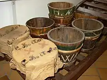 Three coopers worked on the island and it is to be supposed that the cooper's trade began in the 18th century in Werder. Before the Tienen were sold to the fruit farmers, the coopers had to calibrate them. The Tienen were dried and then weighed and the dead weight was branded on the outside. A new Tiene for cherries with a capacity of 7 to 9 pounds cost sixty pfennigs in 1908. A Tiene for raspberries weighed 50 to 60 pounds.