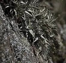 | Tillandsia arequitae above Riolita in Cerro Arequita, department of Lavelleja, Uruguay. The species is endemic in Uriguay. | |