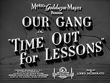 Time Out for Lessons is a 1939 Our Gang short comedy film directed by Edward Cahn. It was the 185th Our Gang short (186th episode, 97th talking short, 98th talking episode, and 17th MGM produced episode) that was released.