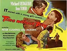 Time Without Pity is a 1957 British film noir thriller film directed by Joseph Losey and starring Michael Redgrave, Ann Todd, Leo McKern, Paul Daneman, Peter Cushing, Alec McCowen and Renee Houston.[3] It is about a father trying to save his son from execution for murder.