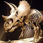 This timeline of ceratopsian research is a chronological listing of events in the history of paleontology focused on the ceratopsians, a group of herbivorous marginocephalian dinosaurs that evolved parrot-like beaks, bony frills, and, later, spectacular horns. The first scientifically documented ceratopsian fossils were described by Edward Drinker Cope starting in the 1870s; however, the remains were poorly preserved and their true nature was not recognized. Over the next several decades, Cope named several such genera and species. Cope's hated rival, Othniel Charles Marsh, also described ceratopsian remains. In 1887, Marsh mistook a Triceratops horn for one belonging to a new species of prehistoric Bison.[1] Marsh also named the eponymous genus Ceratops in 1888.[2] The next year, he named the most famous ceratopsian, Triceratops horridus. It was the discovery of Triceratops that illuminated the ceratopsian body plan,[1] and he formally named the Ceratopsia in 1890.[3]