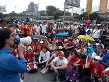 - 23 April – The Democratic Unity Roundtable announces the plans for the 24 April protest titled "The National Sit-in", with gathering points designated in La Villa, Crema Paraíso de Santa Monica, Plaza Brión de Chacaíto, Caurimare, Santa Fe, Altamira, Unicentro el Marqués and Altamira.[78] Organizers stated that it "is a protest of resistance, not of ruckus", calling for a national standstill and asked marchers be prepared with food, water, comfortable clothes and cell phone batteries.[79]