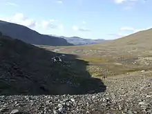 Tjäktjapasset is a mountain pass about 1100 meters above sea level in the Kebnekaise area, Kiruna, Sweden. The Kungsleden trail runs in a north-south direction through this pass, connecting Sälka, which lies 9 km away, and Tjäktja, lying approximately 4 km away.[1] There is also a shelter, where travellers are advised to remain if weather becomes harsh.