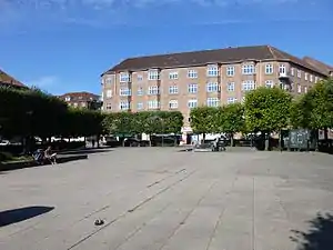 The northern, original part of the square is lined with apartment blocks in red brick. They are from 1921–24 and were designed by Rolf Schroeader with Frederik Wagner as executing architect.