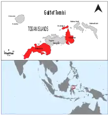 | Location of the Togian Islands with islands where the species has been found marked in red | |