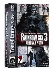 Athena Sword is the first expansion for the PC version of Raven Shield. Athena Sword builds upon the original by adding eight new missions, five new multiplayer maps, three new multiplayer game modes, and seven new weapons. Athena Sword was developed by Ubisoft Milan and released on March 9, 2004. A Mac port was released on November 23, 2004. Athena Sword was packaged with the original game as Tom Clancy's Rainbow Six 3 Gold Edition in 2004.