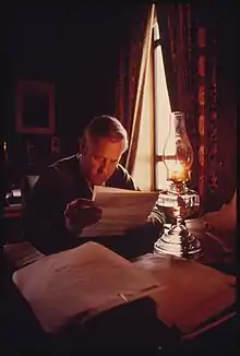 As the oil shock began to affect the rest of the country, Oregon's conservation methods seemed prescient, and the state's leaders were applauded by national media. Taking advantage of the attention, McCall launched a national tour to promote the reforms he'd overseen as an inspiration for other states to follow, referring to the package as the "Oregon Story." He characterized himself as representing a "Third Force" of political independents opposed to the establishment - a popular position during the unfolding Watergate scandal. McCall was talked up in the media as a potential candidate for president, and later recalled that leading political figures such as Clare Boothe Luce and Eugene McCarthy had encouraged him to mount a third-party bid for the office.[16] Biographer Brent Walth doubts that McCall was ever serious about making the Third Force a third party or running for president, and believes that he was simply enjoying the spotlight and using it to promote his political ideas.[1]