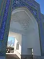 An 18-metre dome, covered in turquoise tiles, tops the mausoleum.[2][3][1] The tile work around the building is of matching colours.[2] Inside the mausoleum, the tomb of Al-Rabi ibn Khuthaym is located underneath the large dome.[1] There are also inscriptions written by calligraphers from the Safavid era, in the style of Thuluth and Bana'i, are present within the building.[3]