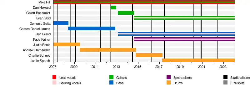 | Past members | Dan Howard, Carson Daniel James, Justin Ennis, Dominic Seita, Andrew Hernandez II, Fade Kainer, Ben Brand, Evan Void |