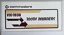 Tooth Invaders is a video game released by Commodore International for its VIC-20 home computer in 1981 and later for the Commodore 64 in 1982. It was developed in association with Camelot Marketing Group in order to positively reinforce the pros of brushing, flossing, and healthy dental care.[1] Seen as a fun way to teach children the importance of dental care, players fight as "Plaqueman" to fight plaque using a toothbrush and dental floss. It was also made in association with the American Dental Association, released during National Dental Month, and supported by dentists.[2]