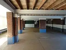 The building layout is highly intact, retaining its original configuration. The undercroft retains original perimeter seats, metal grilles to openings, and rounded corners to the brick pillars. However, some new lightweight partitions have been installed to create storage spaces, which are not of cultural heritage significance. The undercroft play area is connected to bitumen-surfaced play areas in front and behind the building via multiple openings and broad concrete steps.[1]